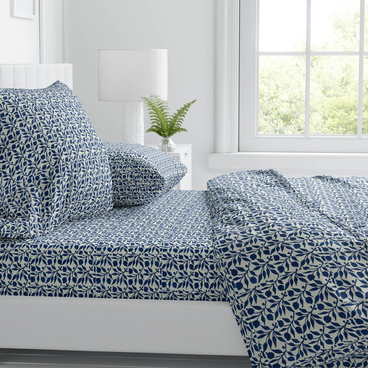 Indigo Bloom 100% Cotton Fitted Bed Sheets